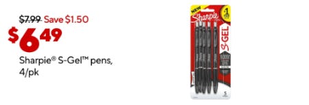 Don't miss out! Shop in store and get $6.49 on $6.49 Sharpie S-Gel™ pens, 4/pk.