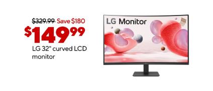 Hurry in and save! Shop in store and get $149.99 LG 32'' curved lcd monitor.
