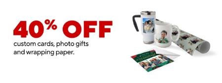 40% Off Custom Cards, Photo Gifts and Wrapping Paper
