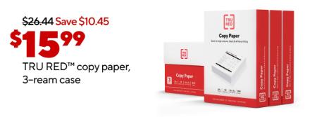 Limited time only! Shop in store and get $15.99 on TRU RED copy paper, 3-ream case.
