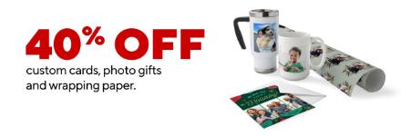 40% Off Custom Cards, Photo Gifts and Wrapping Paper