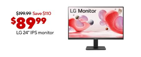 Don't miss out! Shop in store and get $89.99 on LG 24'' IPS monitor.