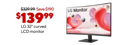 Save now! Shop in store and get $139.99 on LG 32'' Curved LCD monitor.