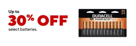 Save now! Shop in store and get up to 30% off on select batteries.