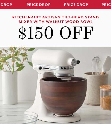 Shop in store and enjoy $150 off on KitchenAid artisan tilt-head stand mixer with Walnut wood bowl.