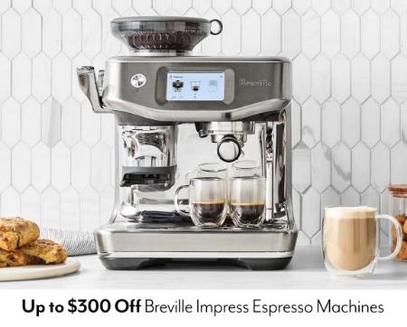 Stop by and get up to $300 off on Breville Impress Espresso Machines in store for a limited time.