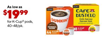 Save now! Shop in store and get as low as $19.99 for K-Cup® pods, 40-48/pk.