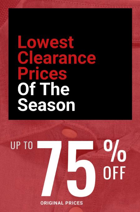 Lowest clearance prices of the season! Shop in store and save up to 75% off on original prices.