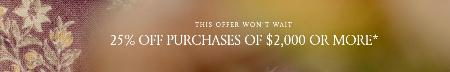 Stop by and take 25% off purchases of $2,000 or more in store for a limited time.