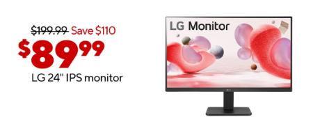 Don't miss out! Shop in store and get $89.99 on LG 24'' IPS monitor.